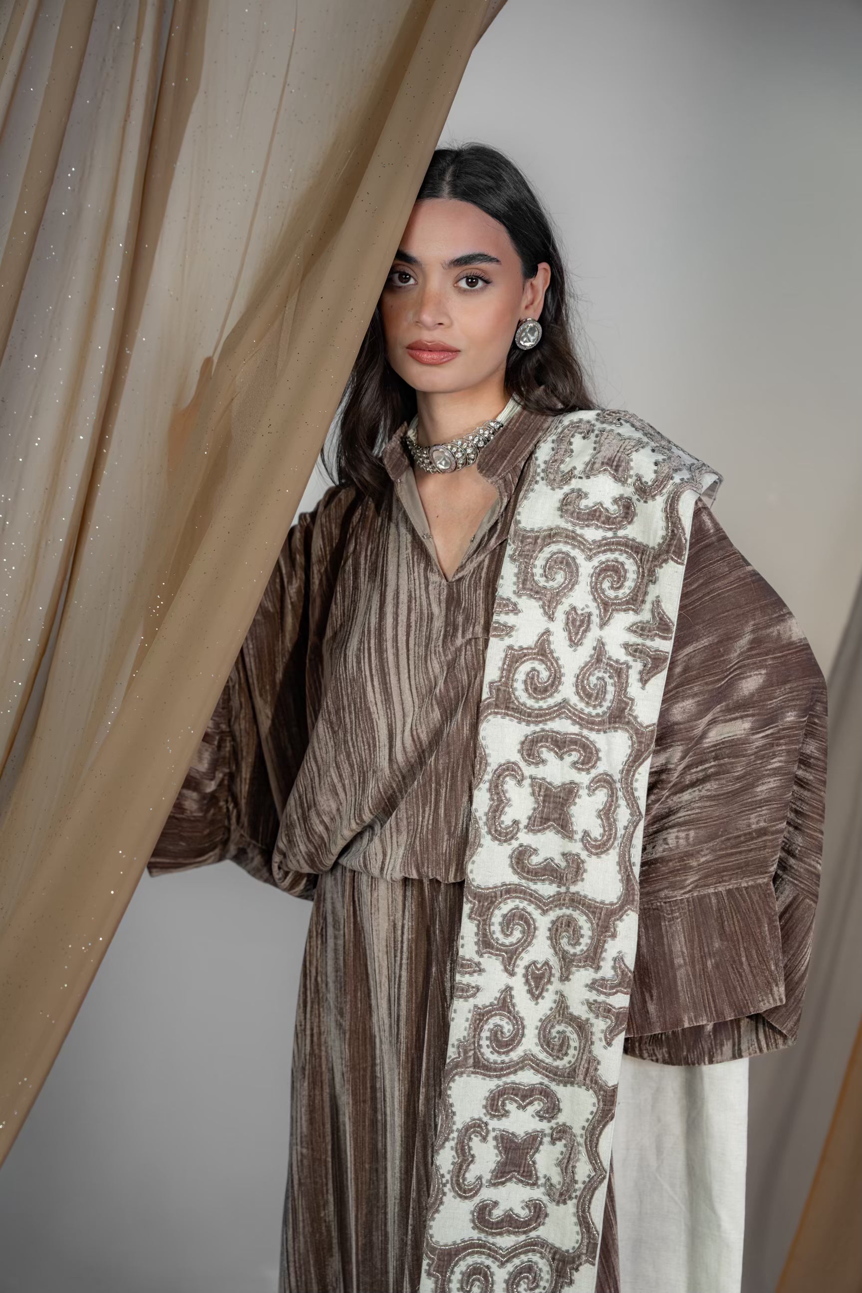 مع شال مطرز