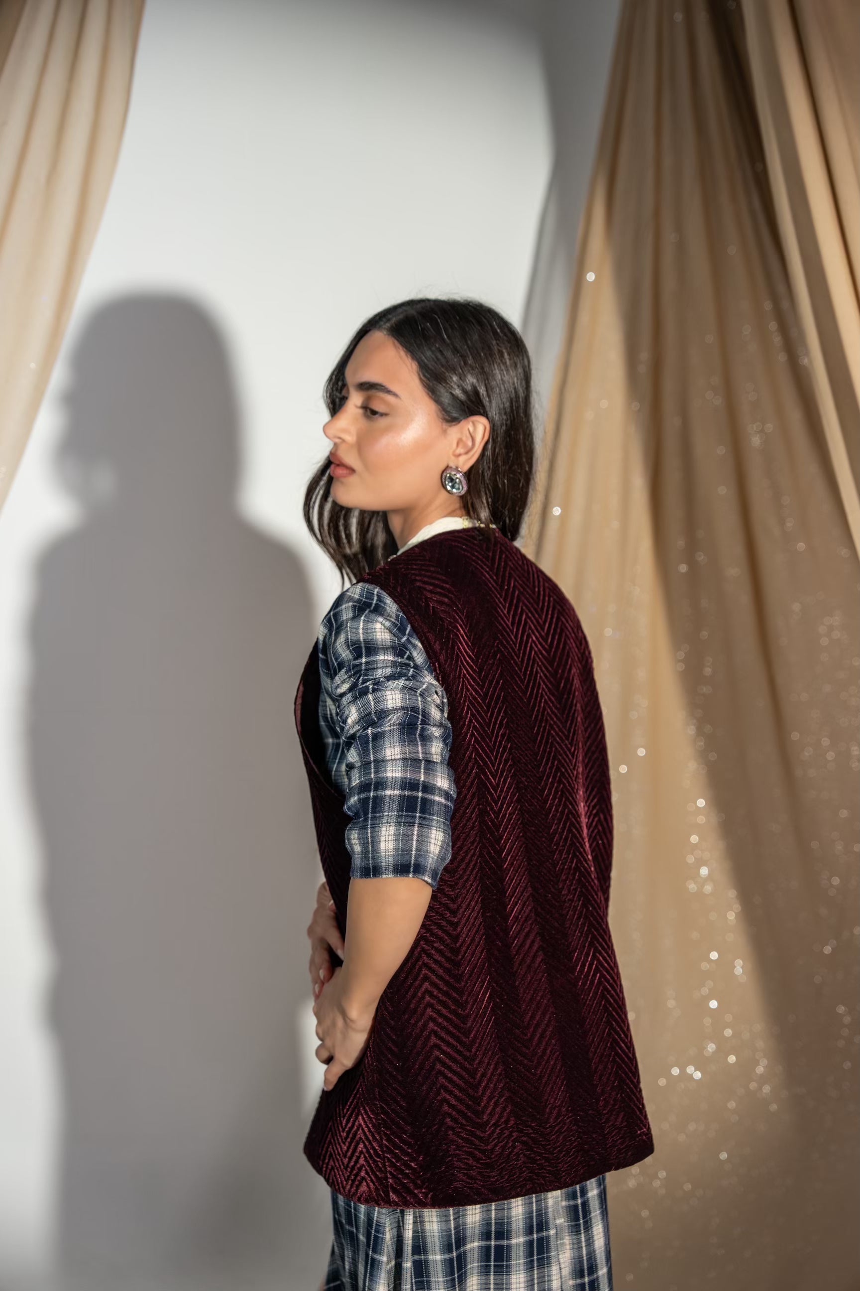 دراعه من خام الكاروهات مع حزام خارج