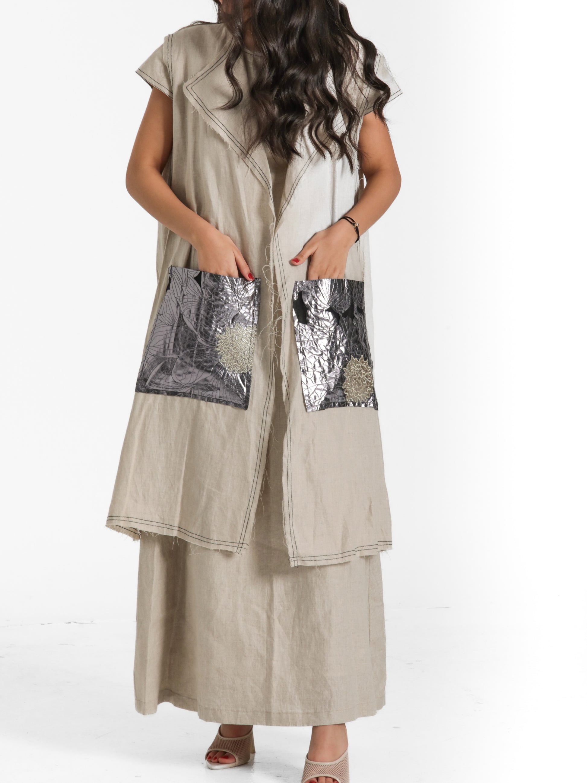 دراعه من اجود انواع اللنن مبطنه بحزام مع فيست حفر