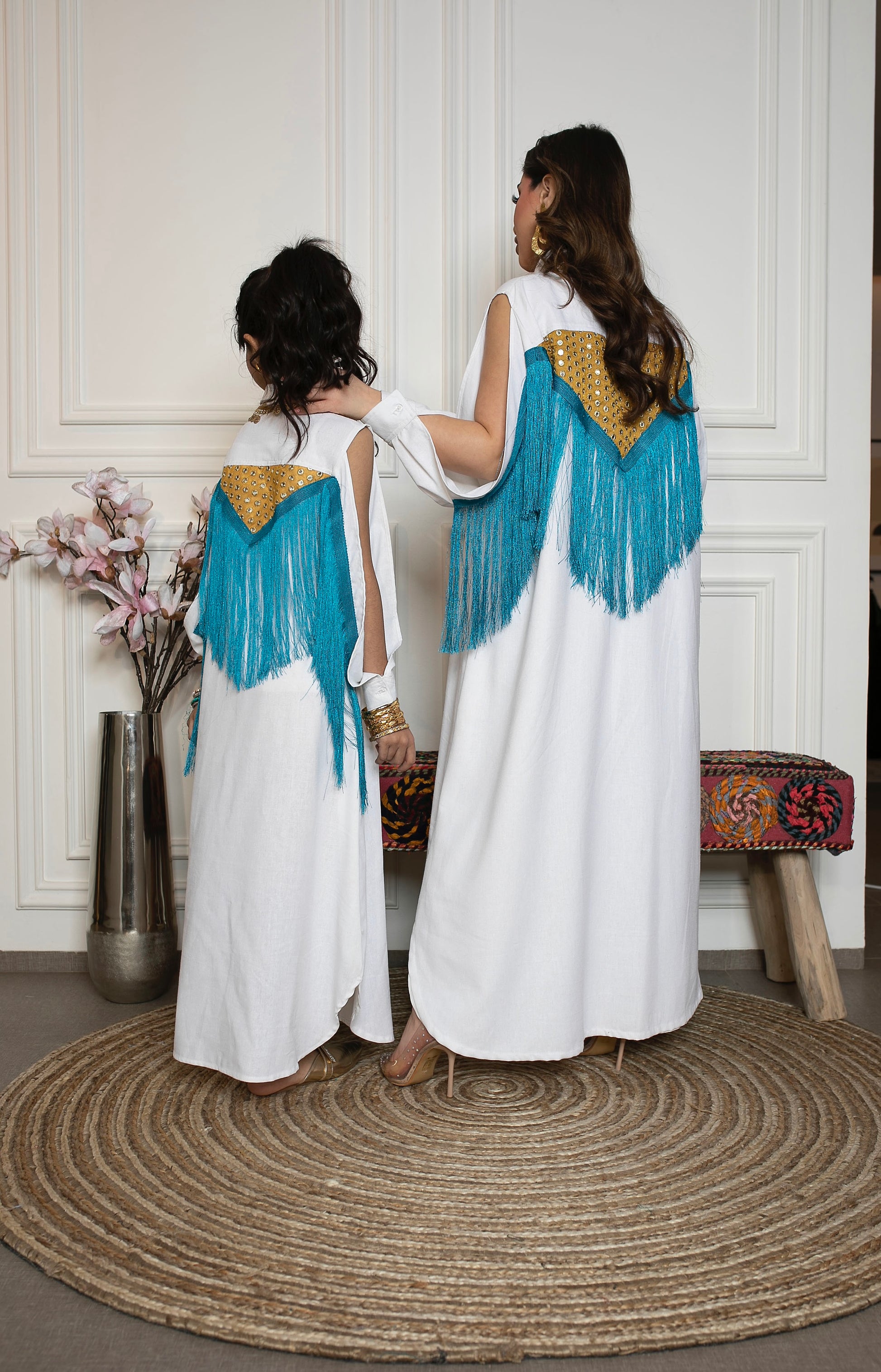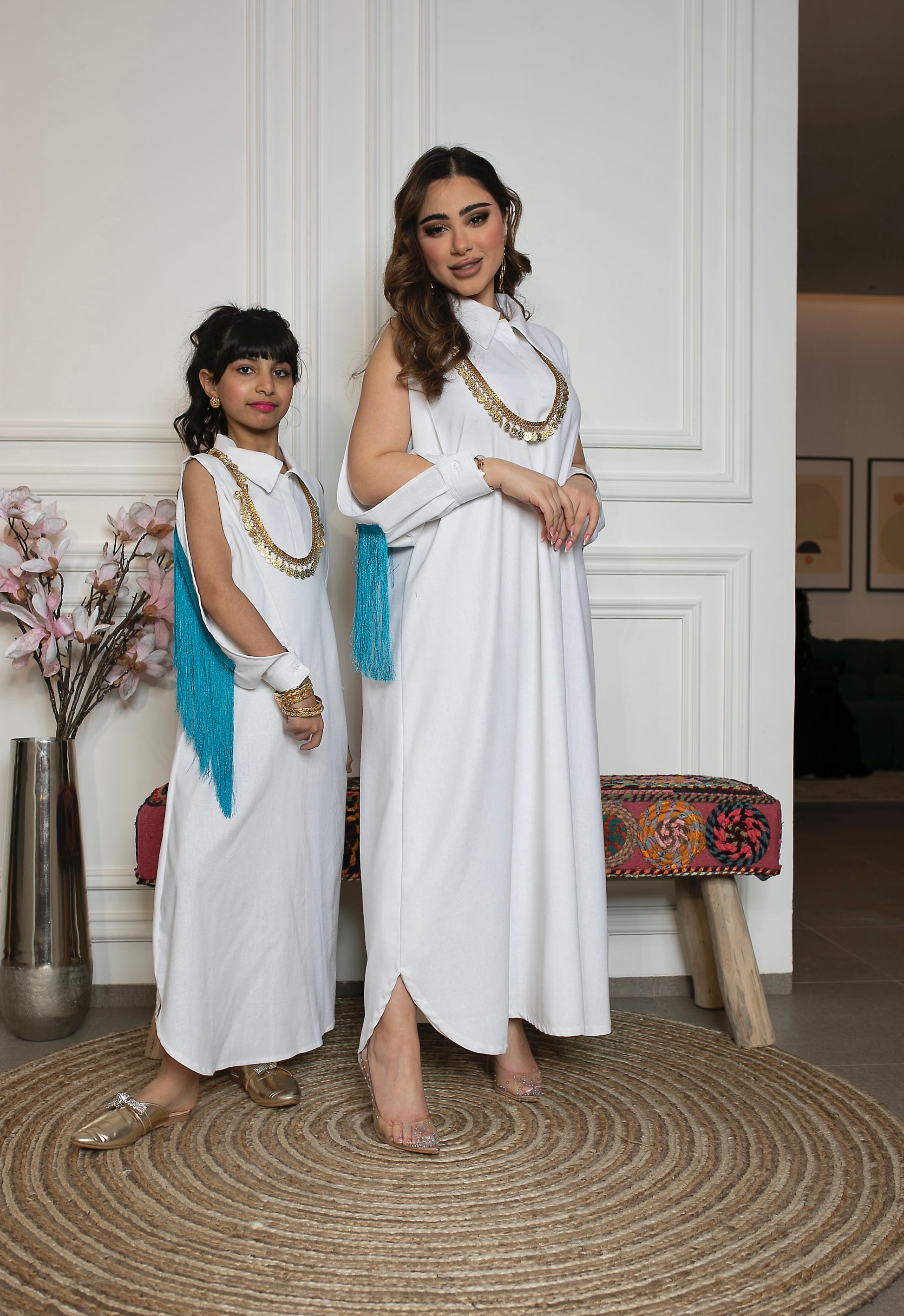 دراعة القميص من خام اللنن مع اكمام مفتوحه بدون بطانه للبنات